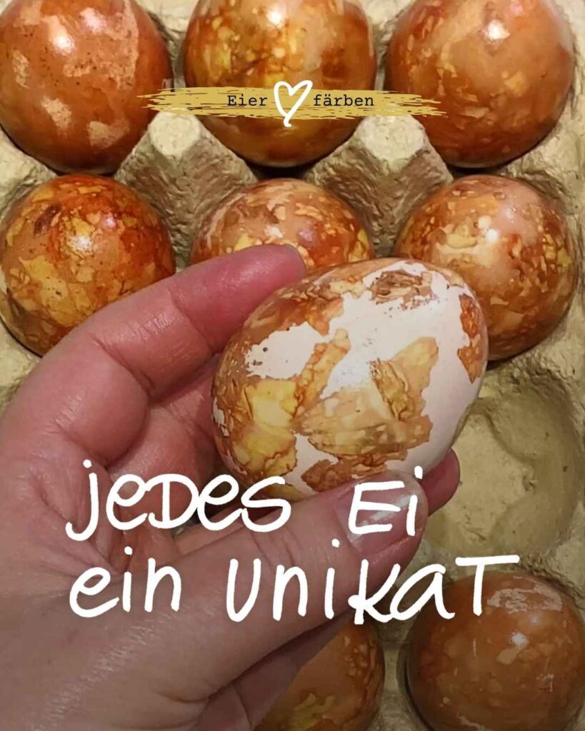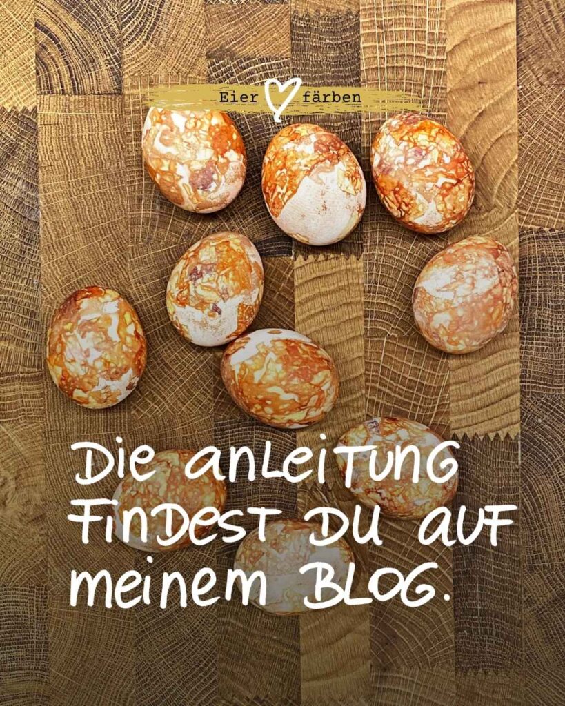 Was mich daran so fasziniert? Diese natürlichen Farben. Dieses Unperfekte. Und dieser Moment, wenn man das Ei aus dem Wasser holt und zum ersten Mal sieht, was entstanden ist. Diese unscheinbaren Schalen machen einfach die schönsten Farben. So warm, so natürlich – und jedes Ei sieht am Ende anders aus.