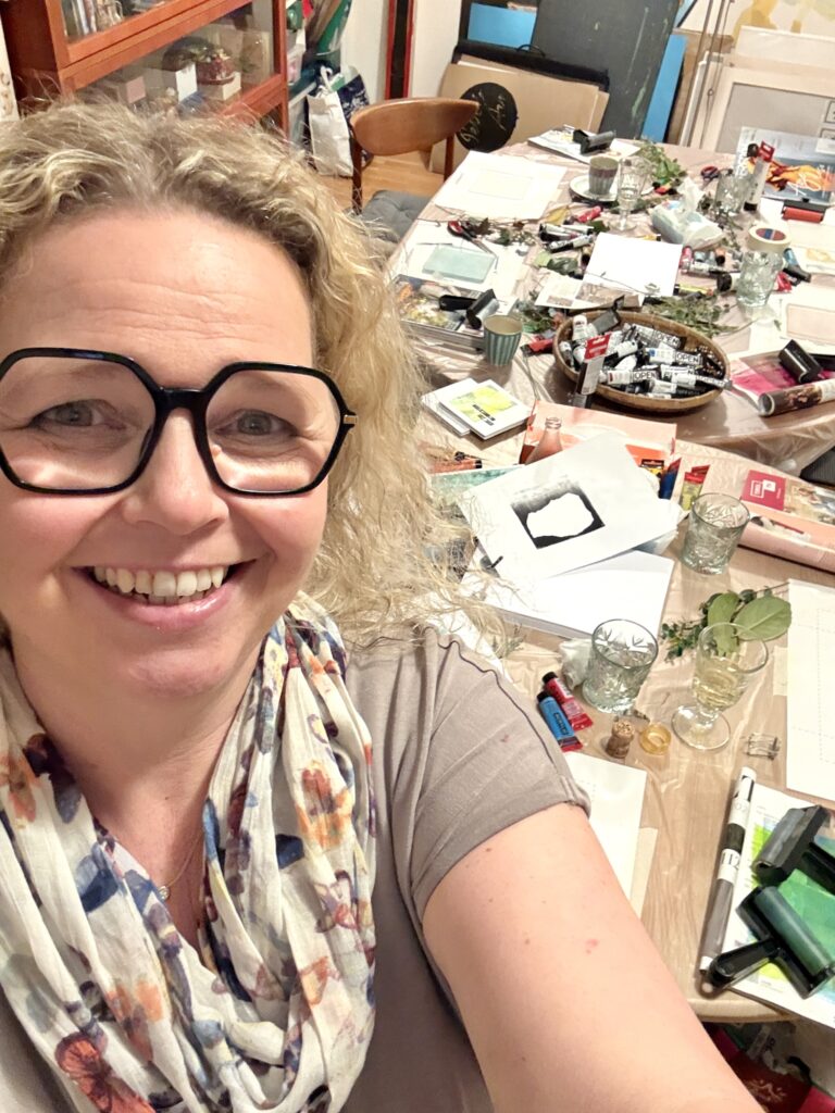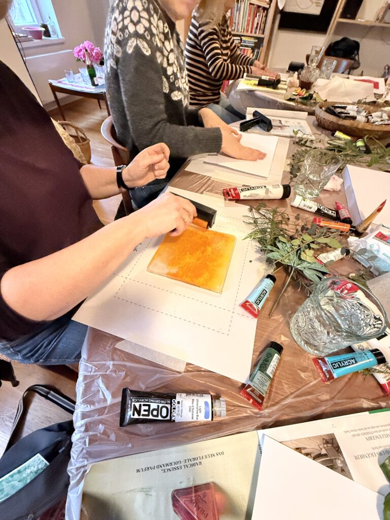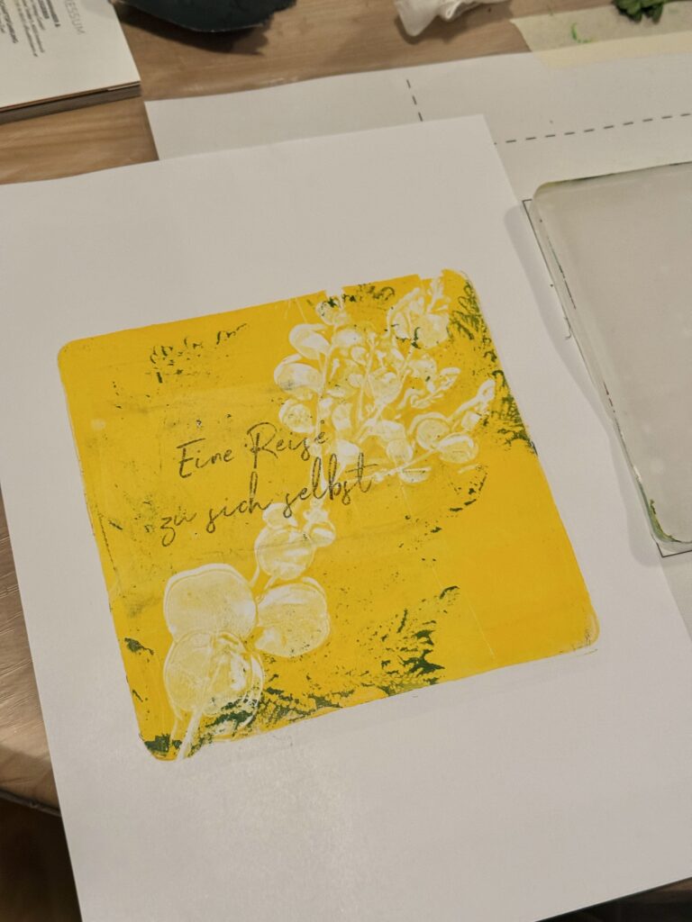 Ich glaub, genau das ist mein Lieblingsmoment im ganzen Workshop. Wenn es plötzlich still wird – und dann von irgendwo ein leises „Ahhh“ kommt. Kurz darauf noch ein „Ohhh“ von der anderen Seite. Und alle ein bisschen grinsen, weil wieder etwas entstanden ist, das man so nie planen hätte können. Jeder Druck anders. Jeder auf seine Weise schön. Und irgendwo dazwischen ganz viel Experimentierfreude, ein bisschen Farbchaos und dieses gute Gefühl, einfach mal nur im Tun zu sein.